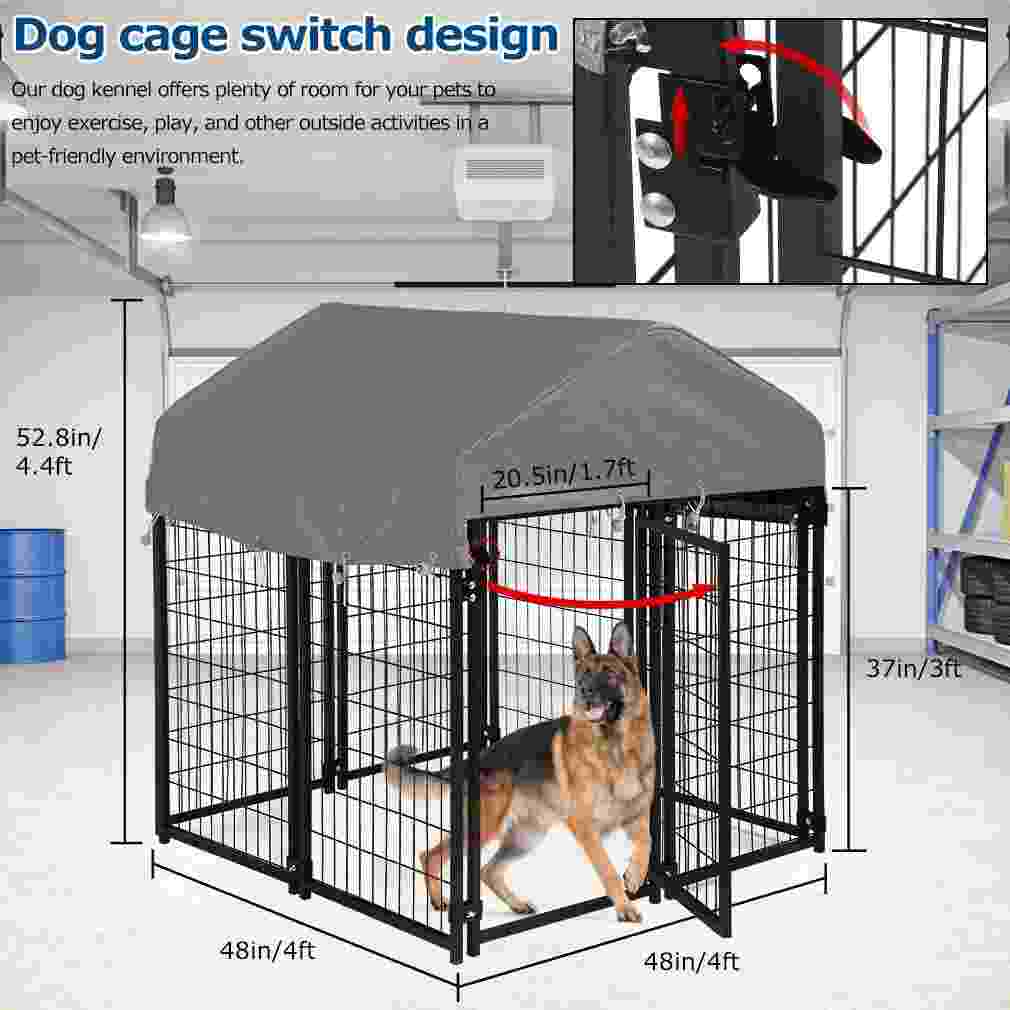 - VNEWONE Large Outdoor Dog Kennel. Galvanized Welded Metal with UV Protection Waterproof Cover and Roof.